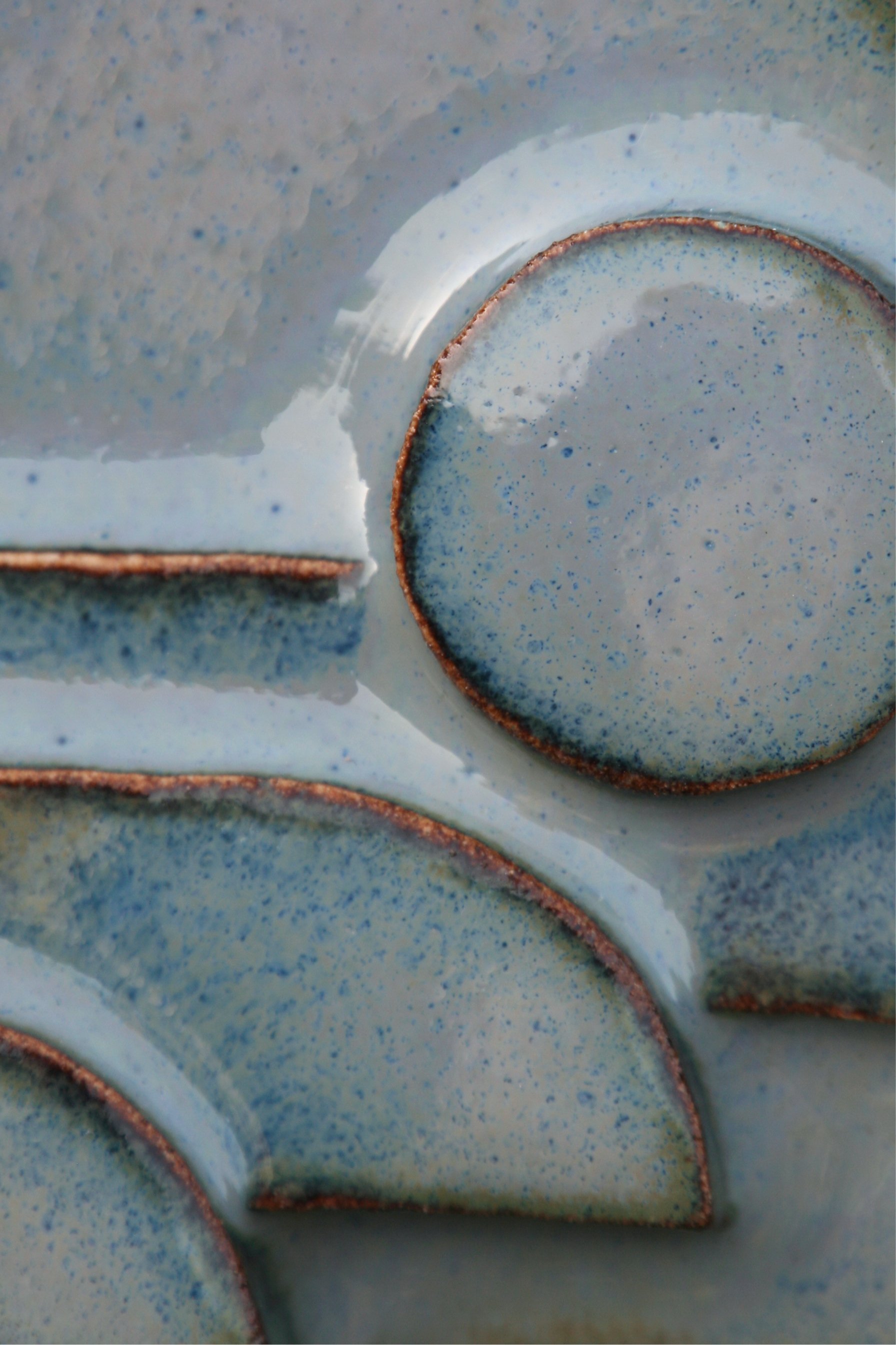 MATERIALS: Cream-white stoneware, Non-toxic glaze, Hanging device wood/metal